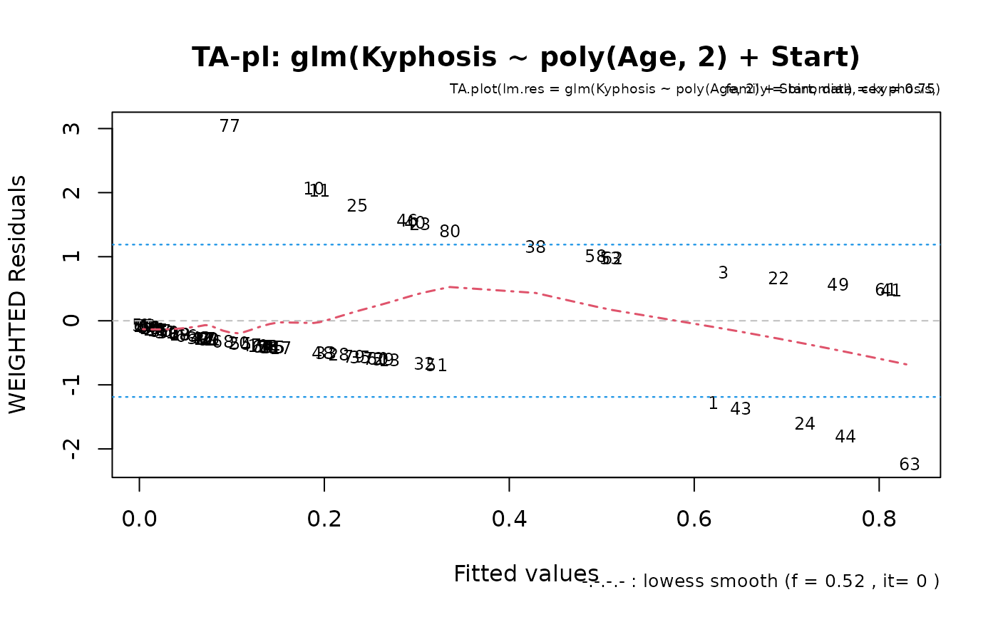 TA.plot(glm(Kyphosis ~ poly(Age,2) + Start, data=kyphosis, family = binomial),