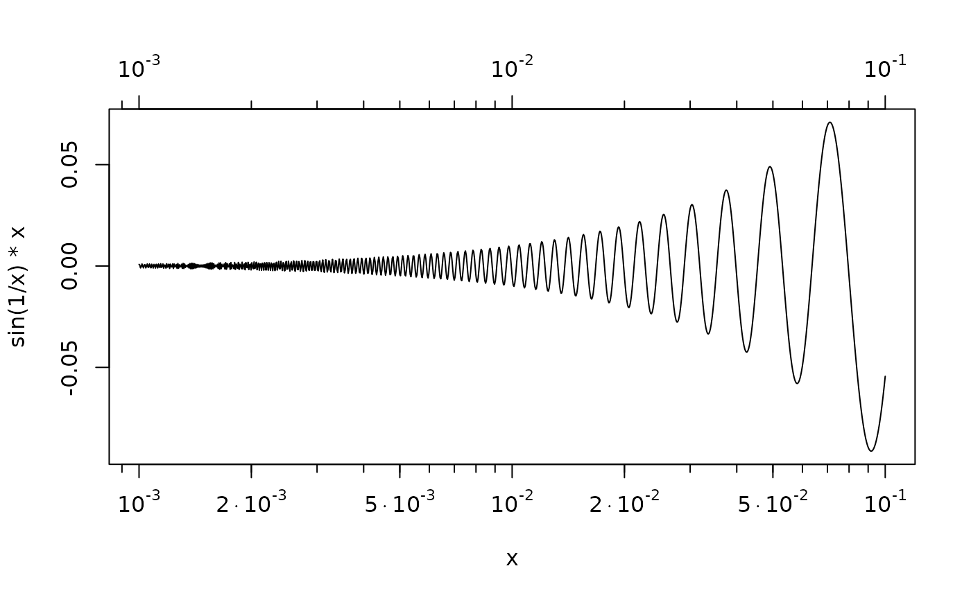 plot(x, sin(1/x)*x, type = "l", xaxt = "n", log = "x")