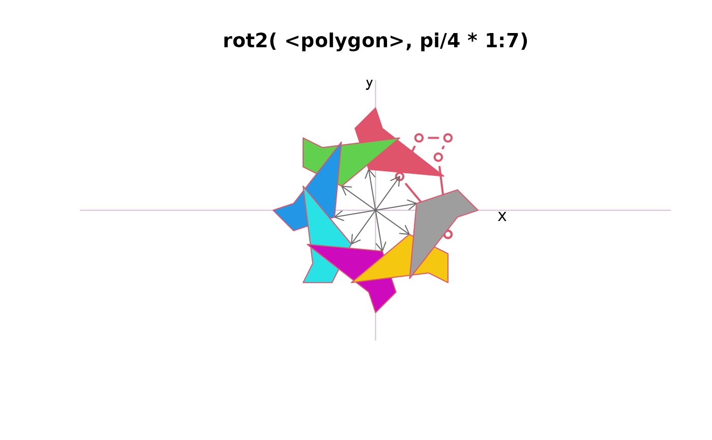 polygon(rot2(xy0, phi = phi), col = 1+phi/(pi/4), border=2, type = "b")