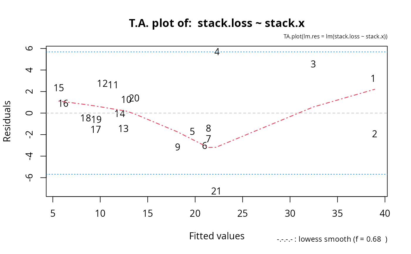 TA.plot(lm(stack.loss ~ stack.x))