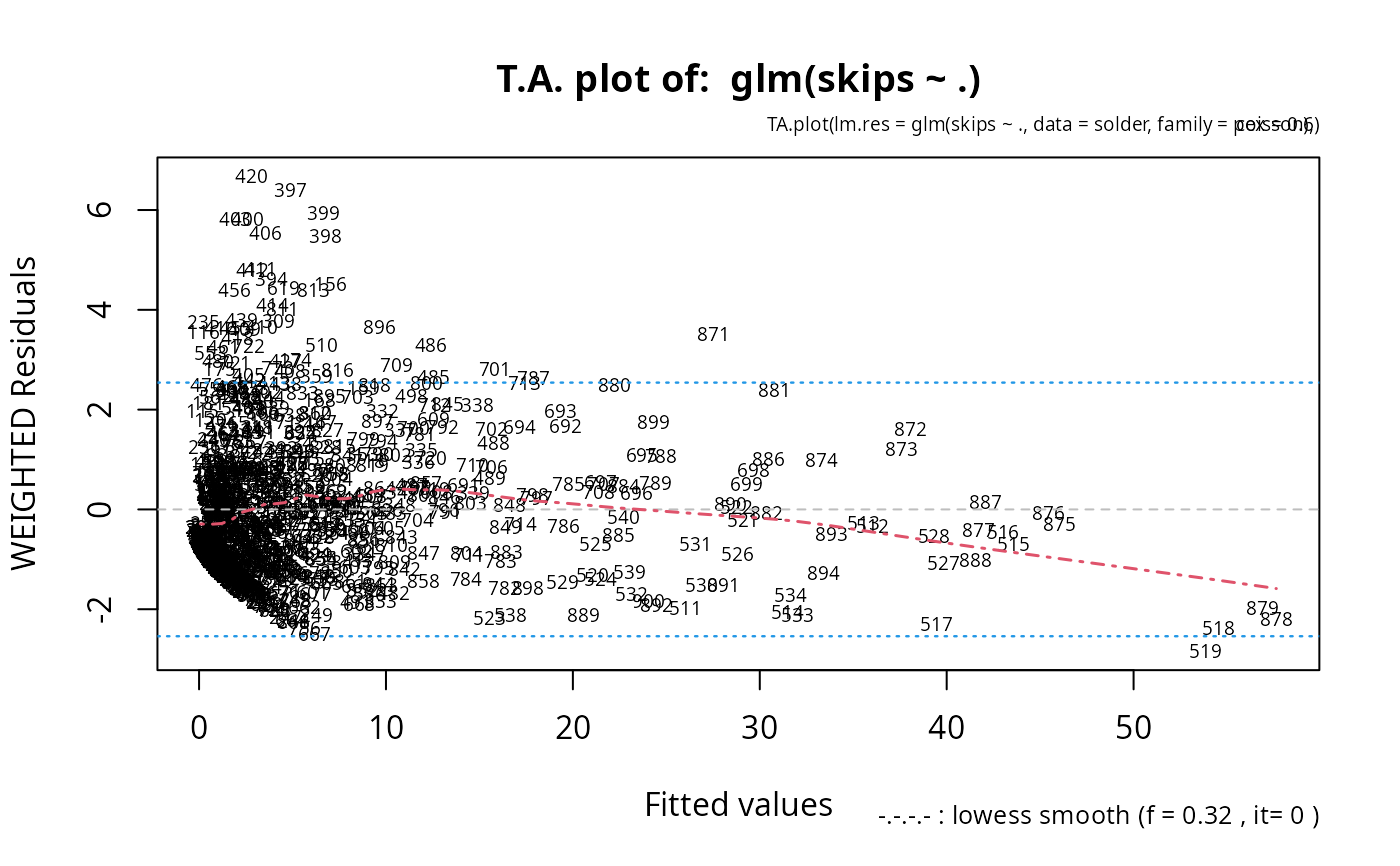 TA.plot(glm(skips ~ ., data = solder, family = poisson), cex= .6)