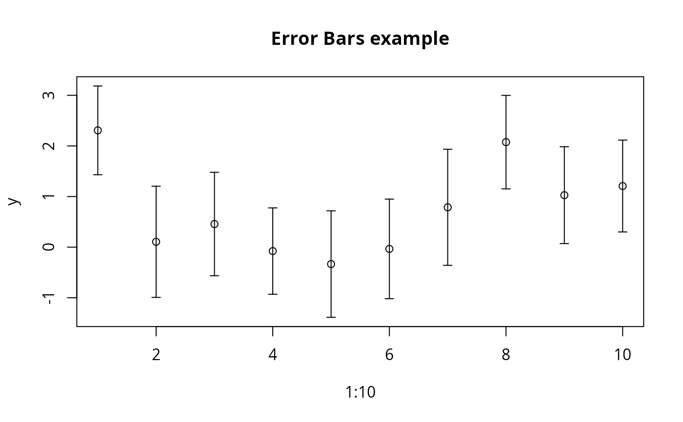errbar.RdDraws a scatter plot, adding vertical “error bars” to all the points.