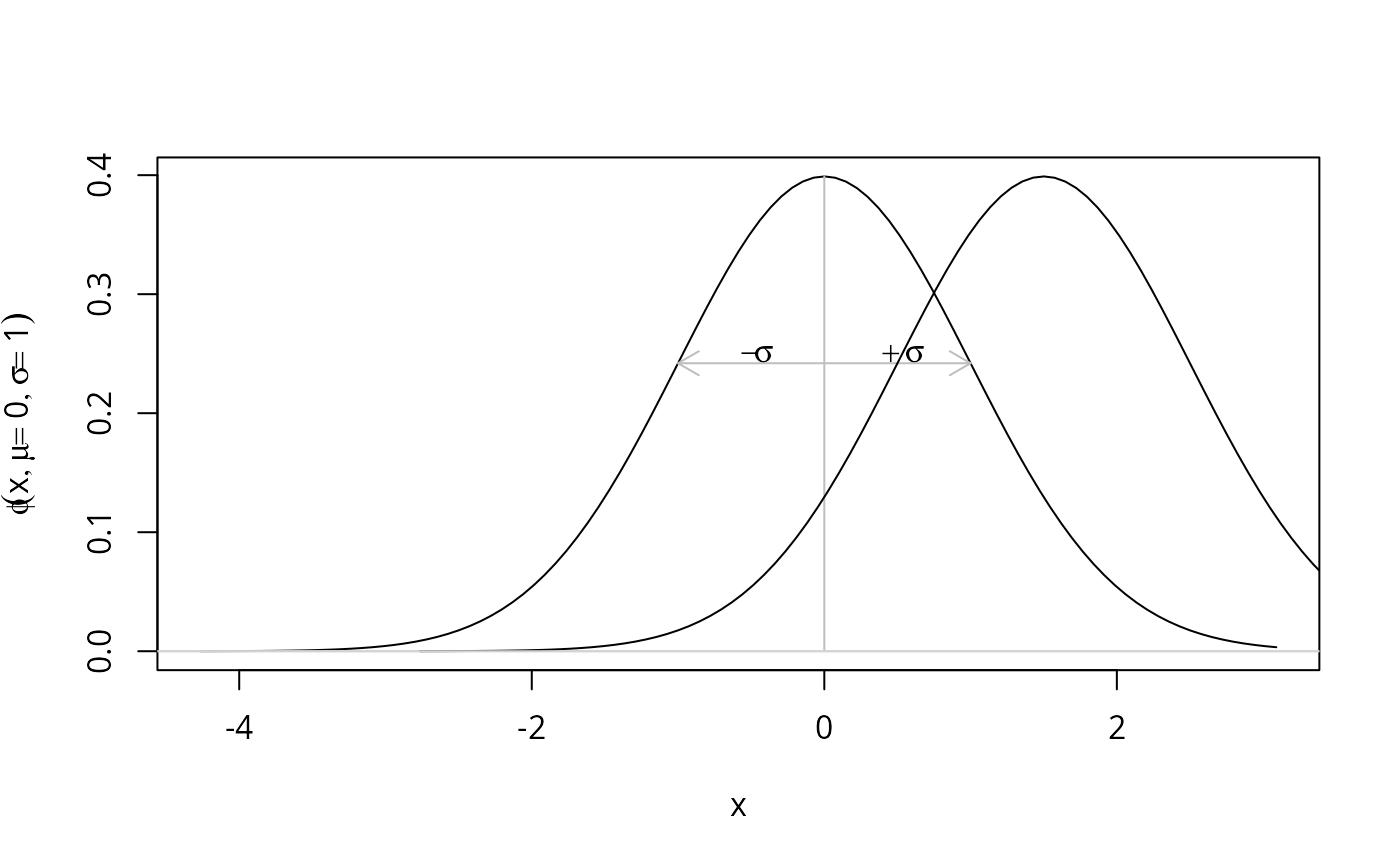 p.dnorm(mu=1.5, add = TRUE, ms.lines = FALSE) # add to the plot above