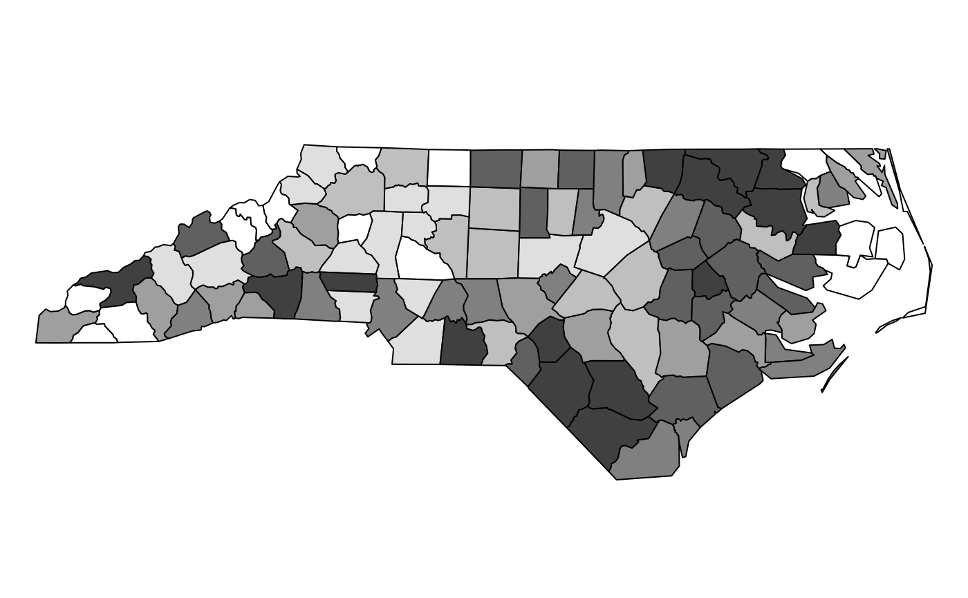 ## multi-panel plot with coloured lines: North Carolina SIDS