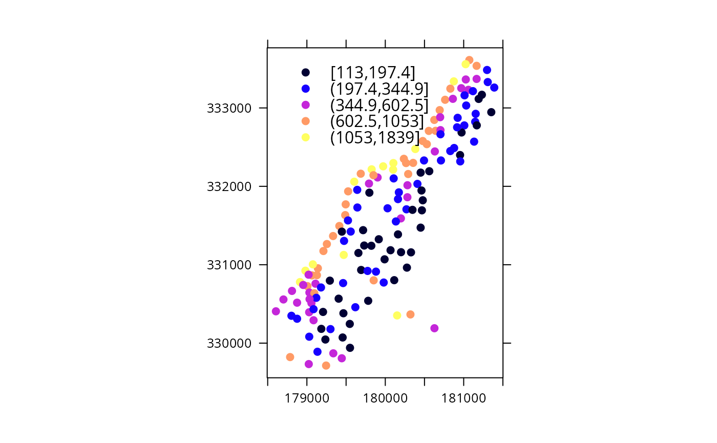plot(as(meuse, "Spatial"), expandBB = c(.05, 0, 0, 0))