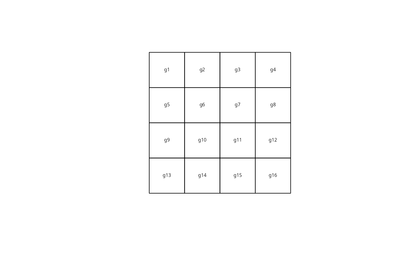 grd <- GridTopology(cellcentre.offset=c(-175,55), cellsize=c(10,10), cells.dim=c(4,4))