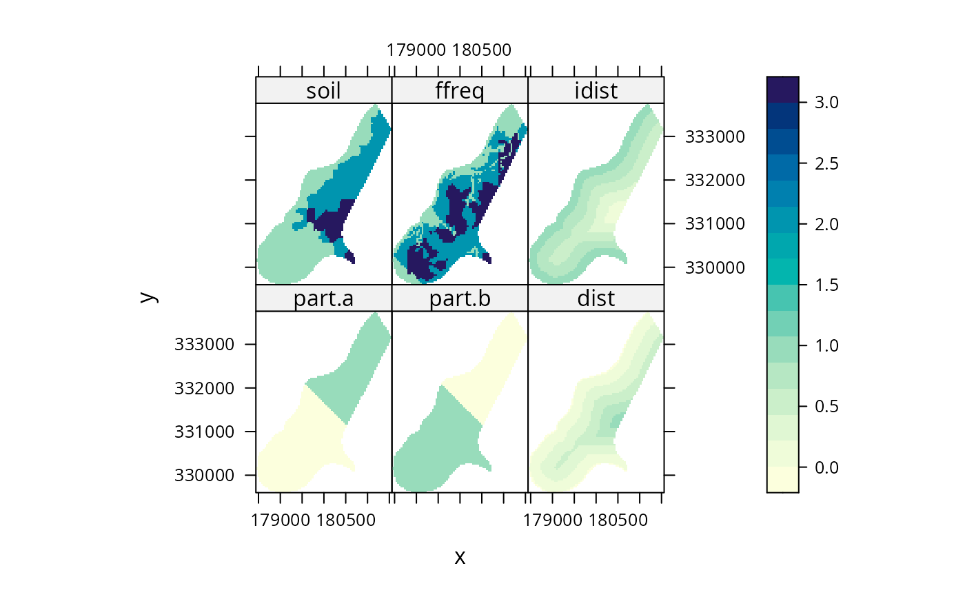 meuse.grid[["idist"]] = 1 - meuse.grid[["dist"]] # add variable