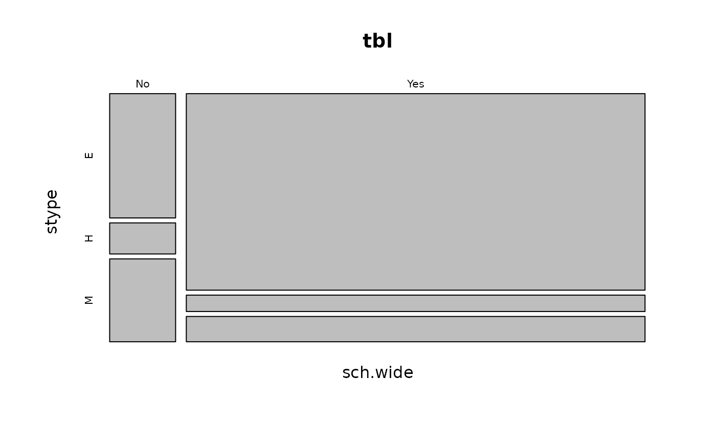 svychisq(~sch.wide+stype, rclus1, statistic="adjWald")