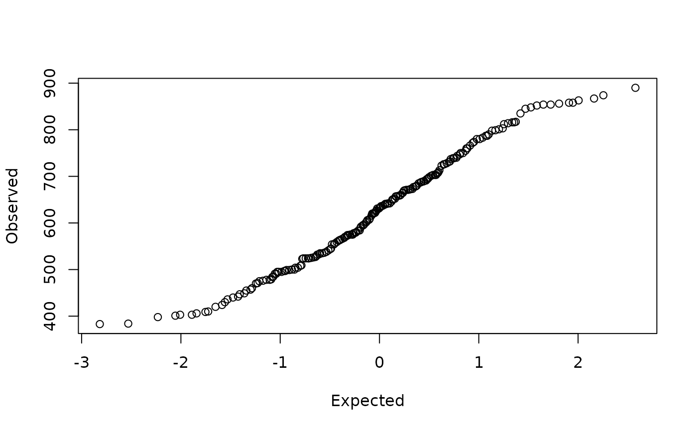 svyqqmath(x, design, null=qnorm, na.rm=TRUE, xlab="Expected",ylab="Observed",...)
