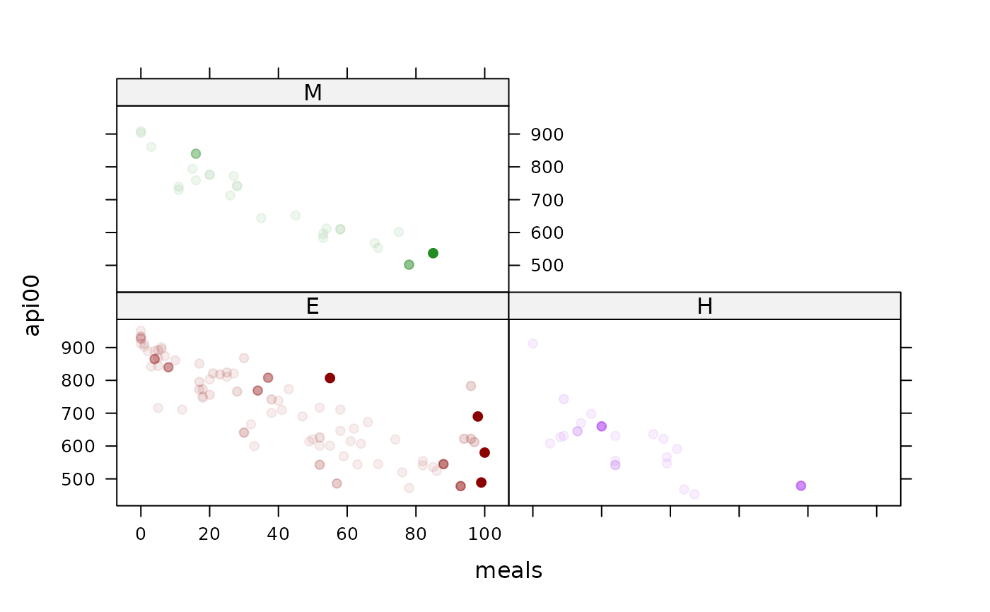 svycoplot(api00~api99|sch.wide, design=dclus2, style="trans")