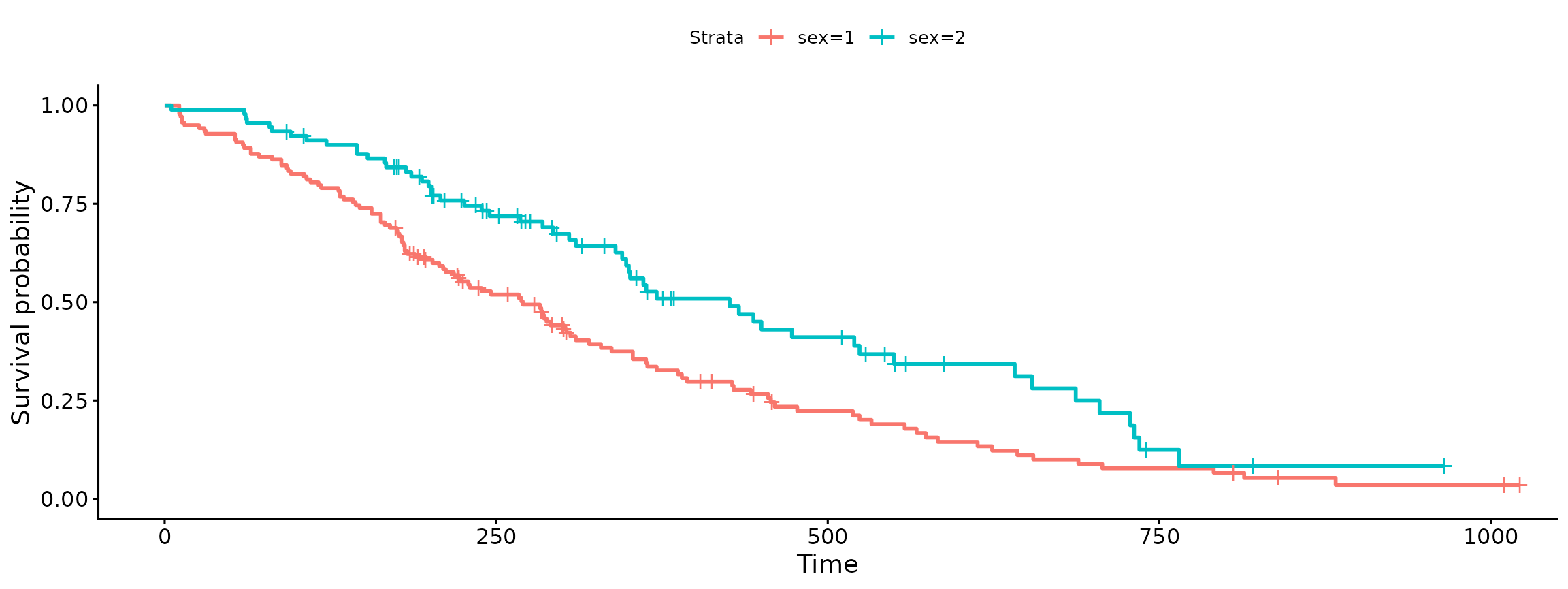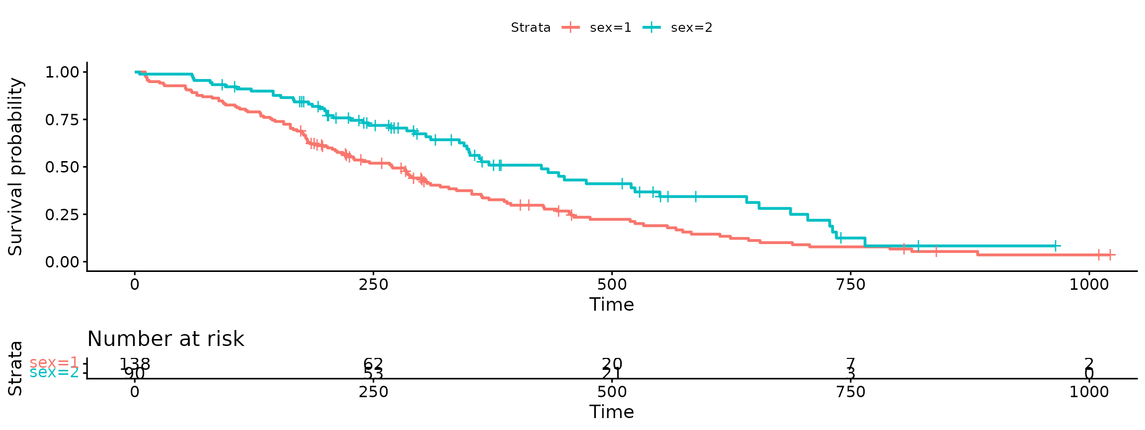 fit<- survfit(Surv(time, status) ~ sex, data = lung)