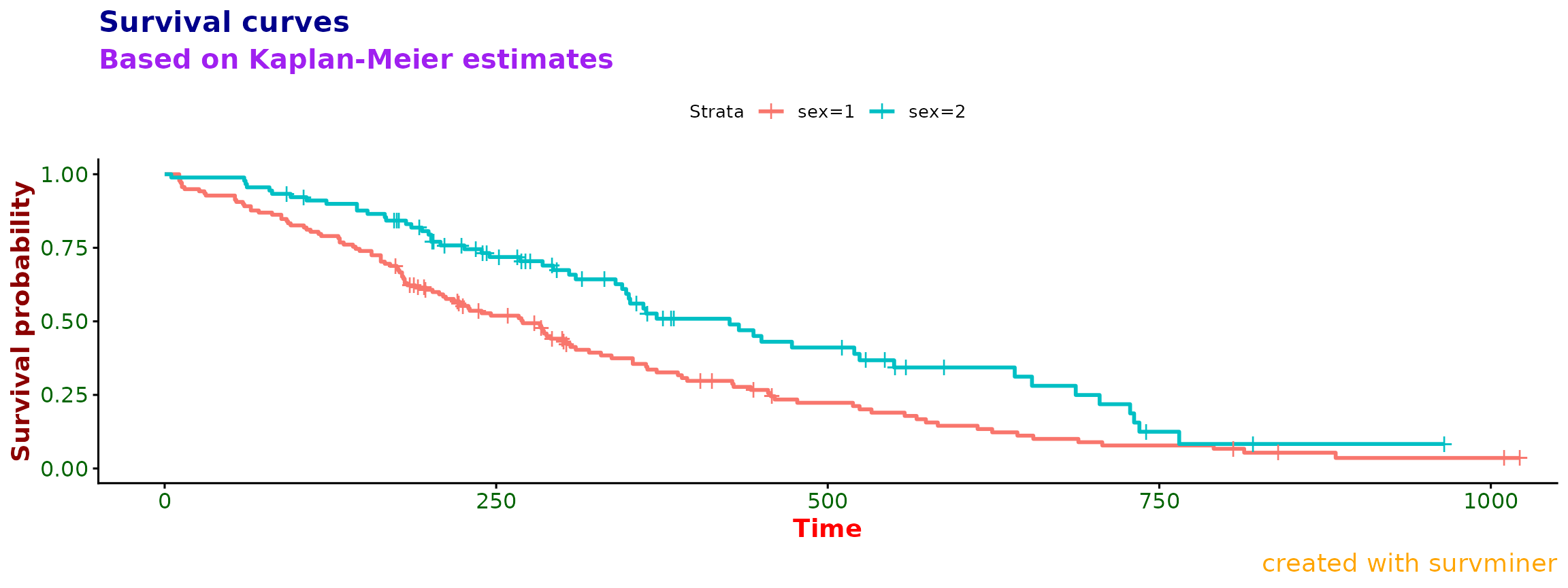 title = "Survival curves", subtitle = "Based on Kaplan-Meier estimates",