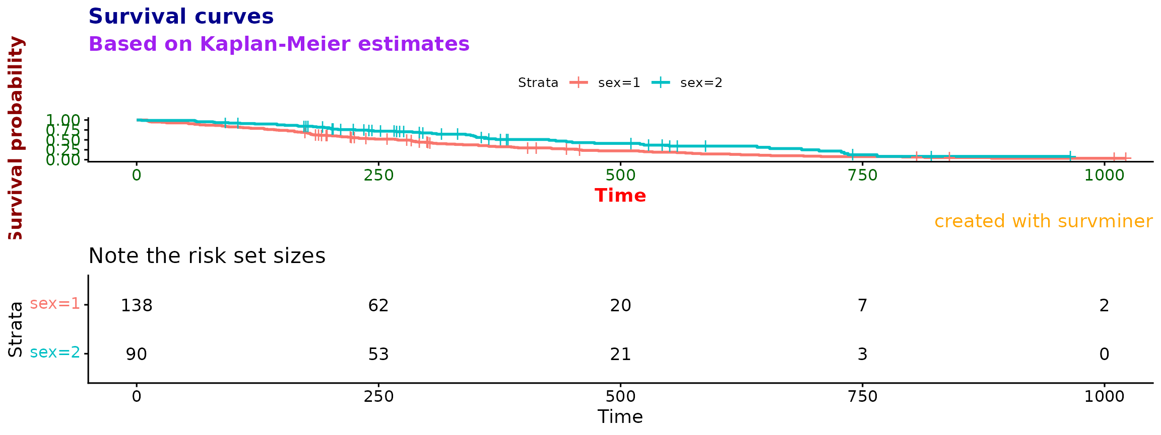 risk.table.title = "Note the risk set sizes",