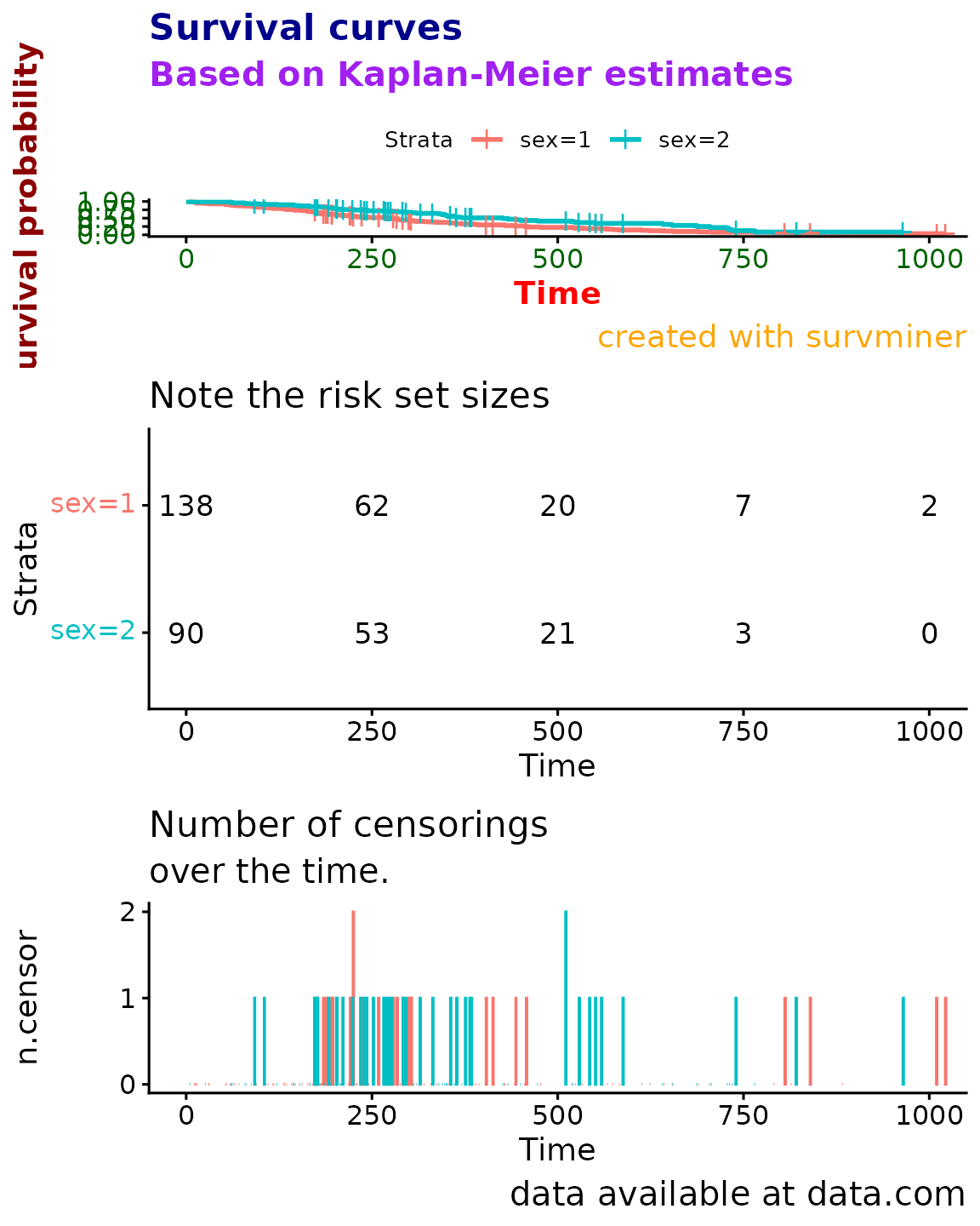 Please compare basic plot with a risk table and a ncens
