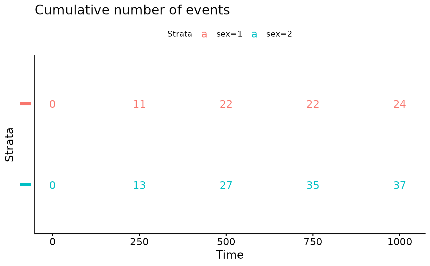 ggcumevents(): Plot the cumulative number of events table.