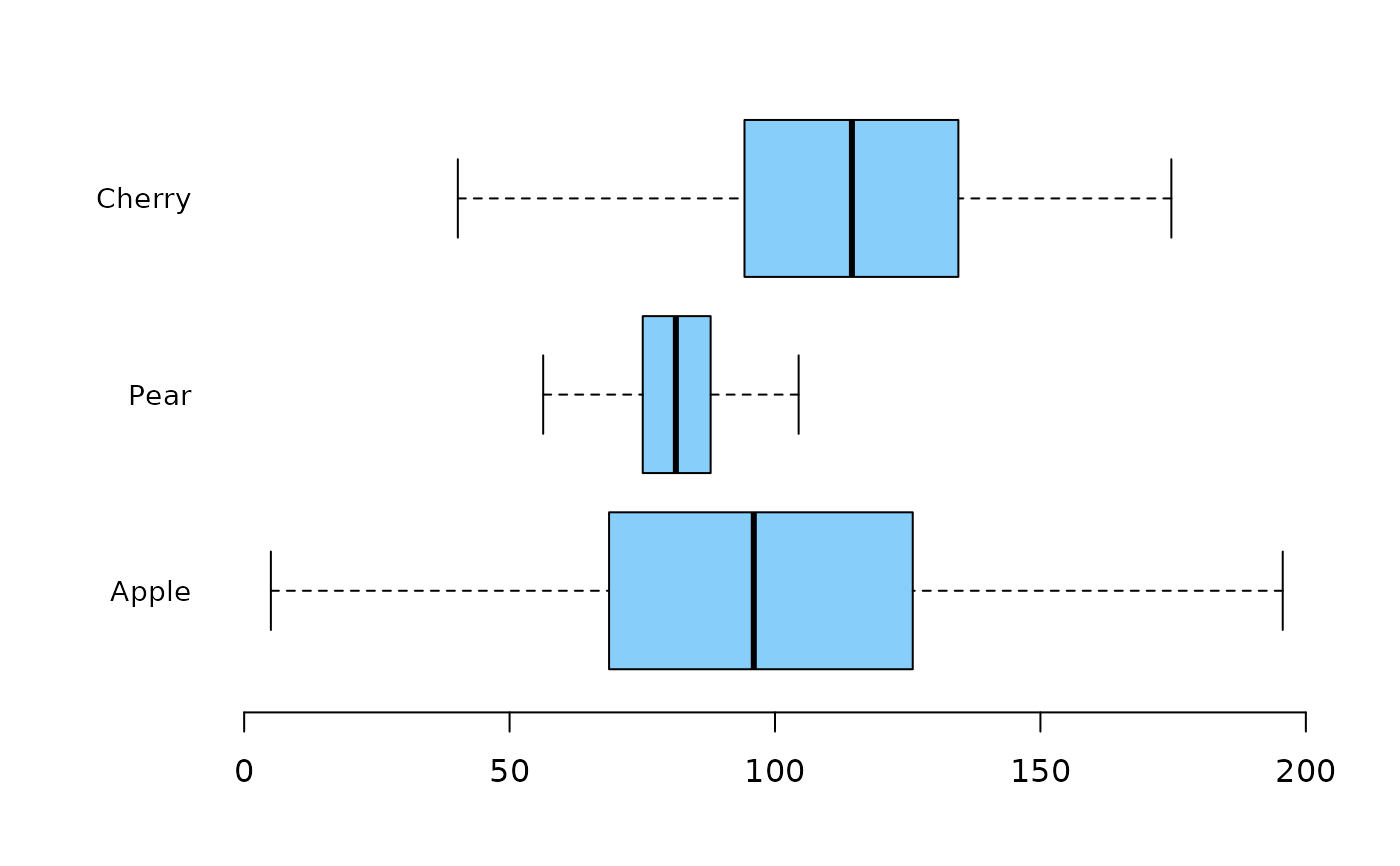 boxplot(s, horizontal=TRUE, col="lightskyblue", axes=FALSE)