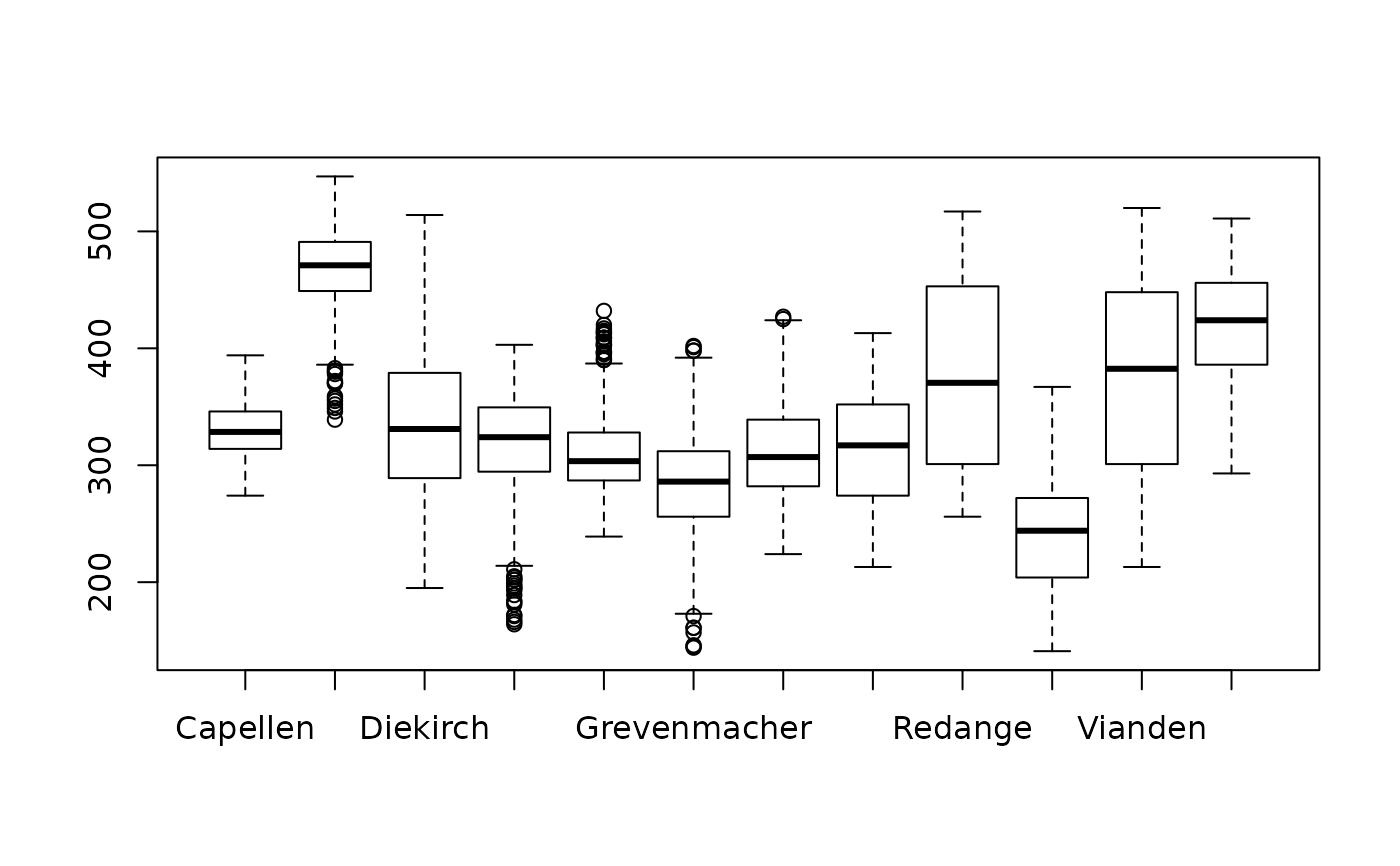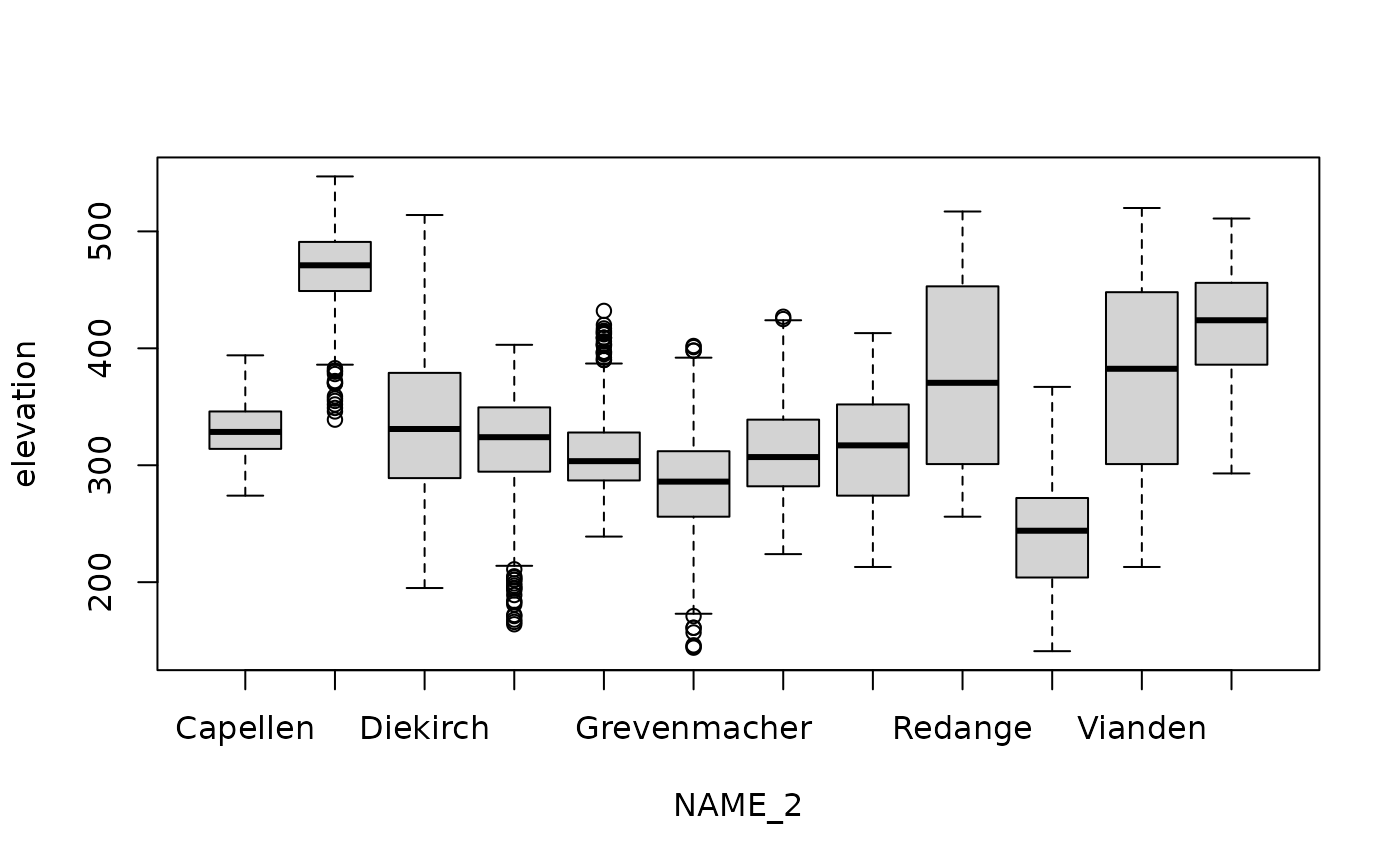boxplot(x, y=NULL, maxcell=100000, ...)SpatRaster