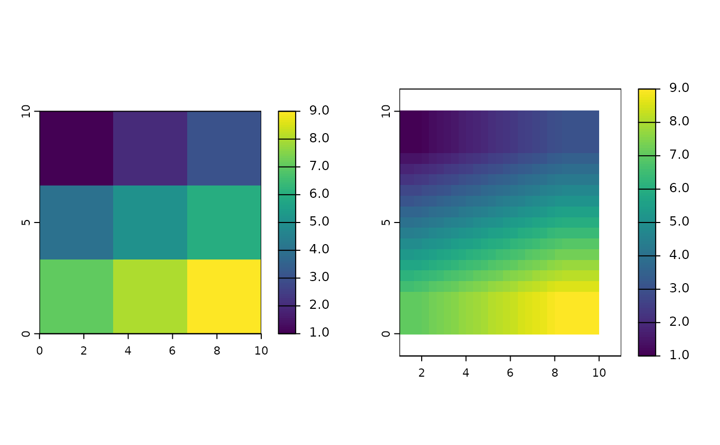 bilinear: bilinear interpolation (3x3 cell window). This is used by default if the first layer of x is not categorical