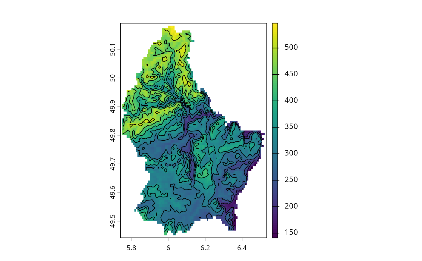 contour(r, add=TRUE)