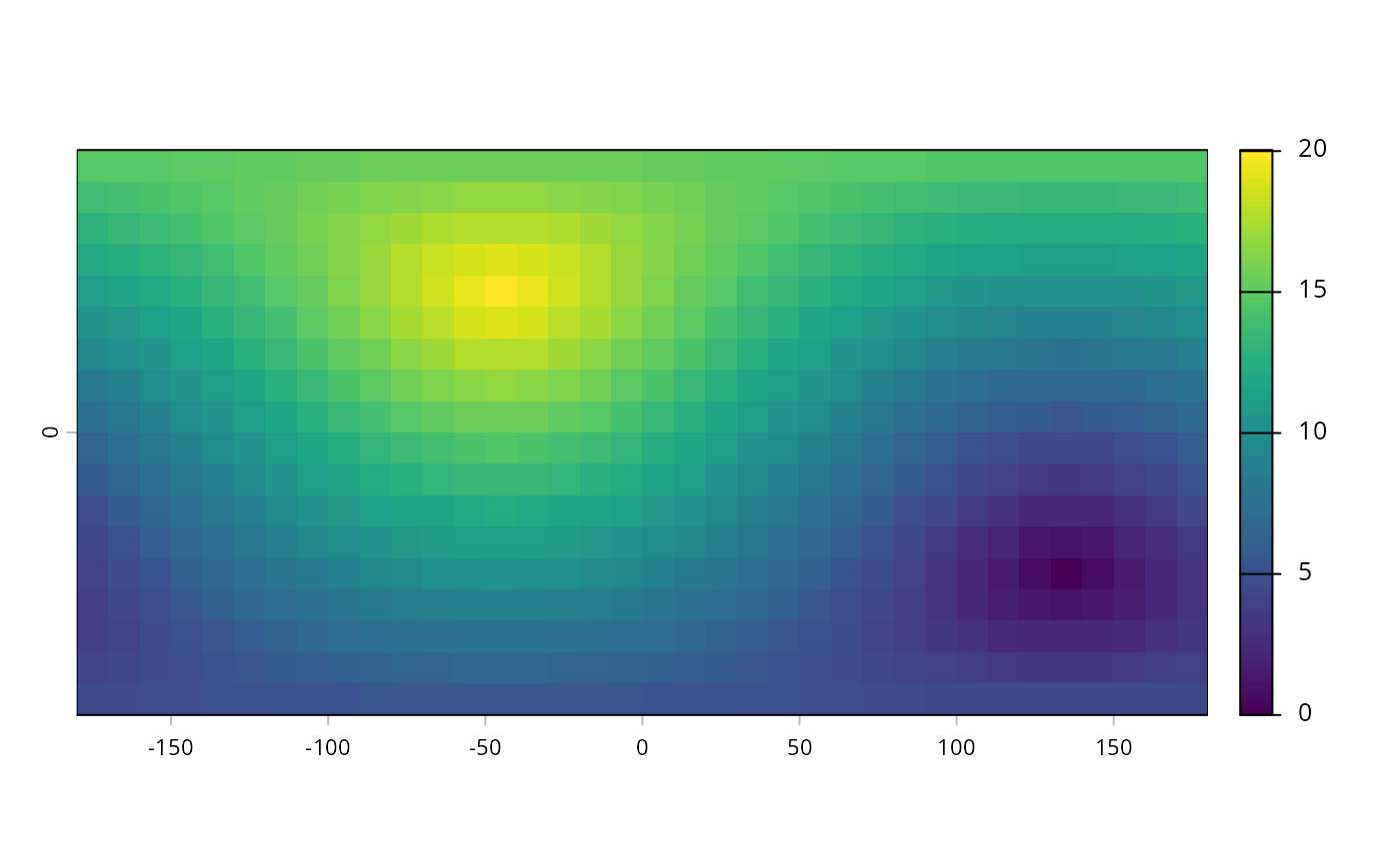 r <- rast(ncols=36, nrows=18, crs="+proj=longlat +datum=WGS84")
