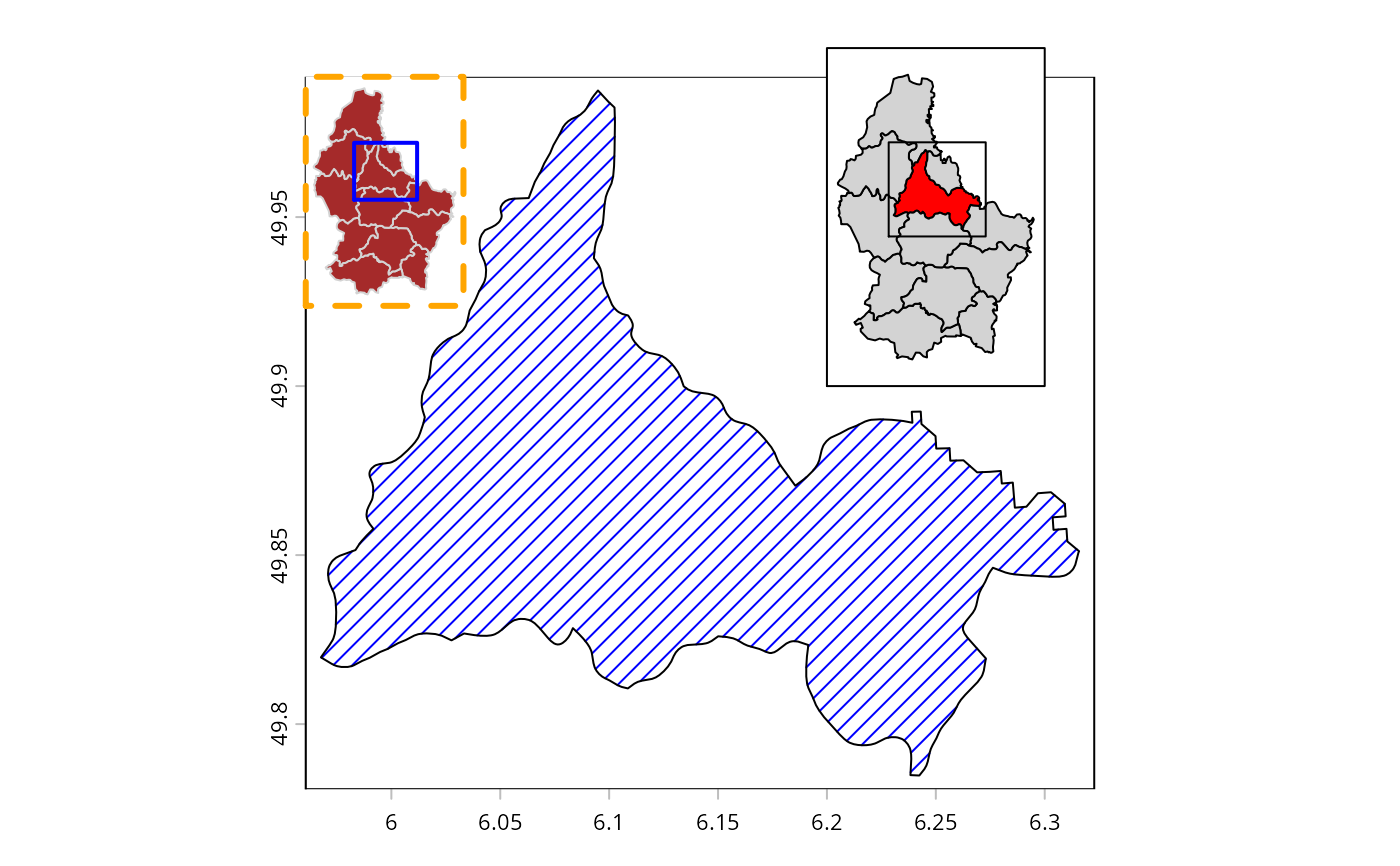 SpatExtent or missing, to draw a box on the inset, e.g. to show where the map is located in a larger area