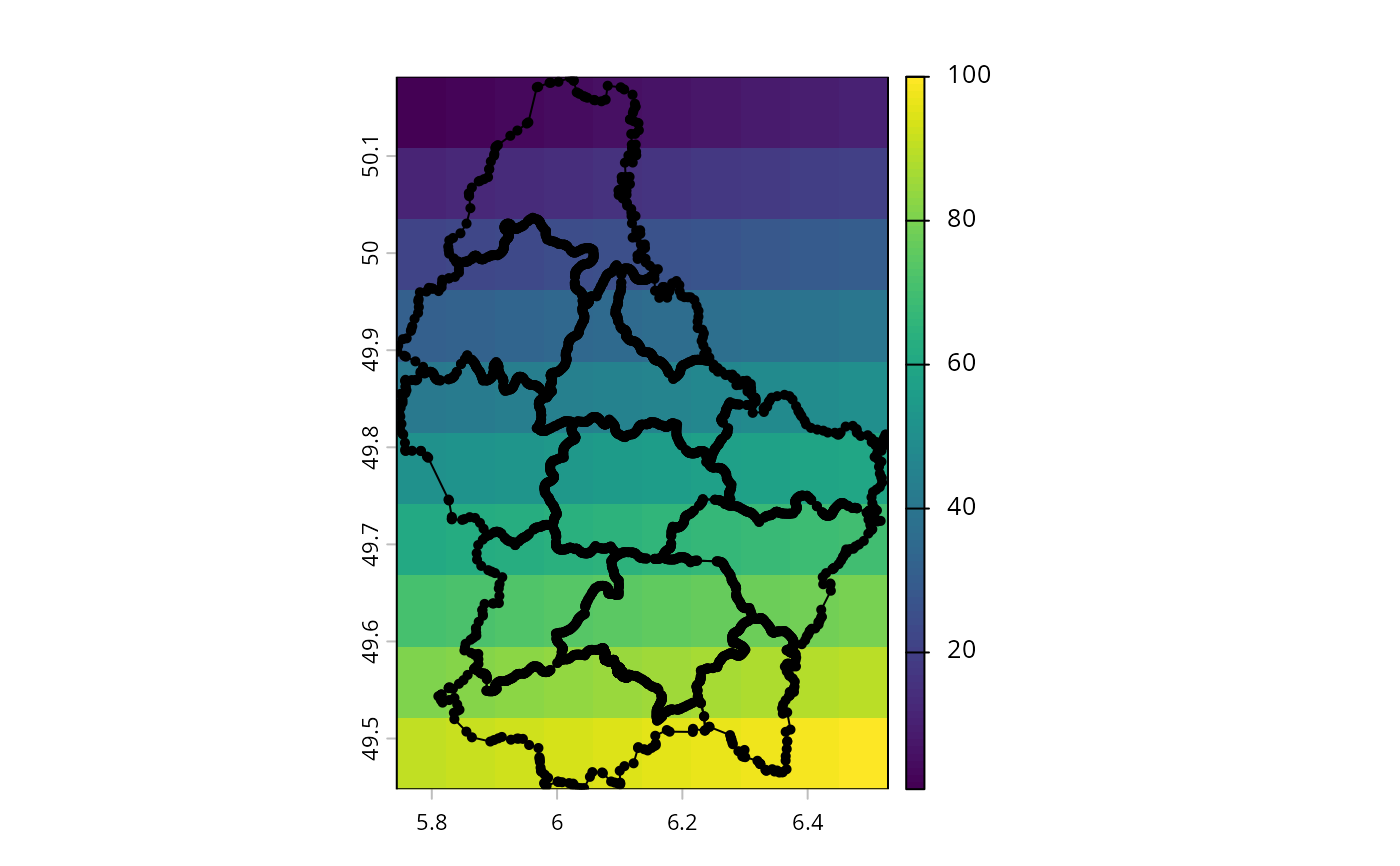 These methods also work for a small(!) SpatRaster. Only cells that are not NA in the first layer are used.