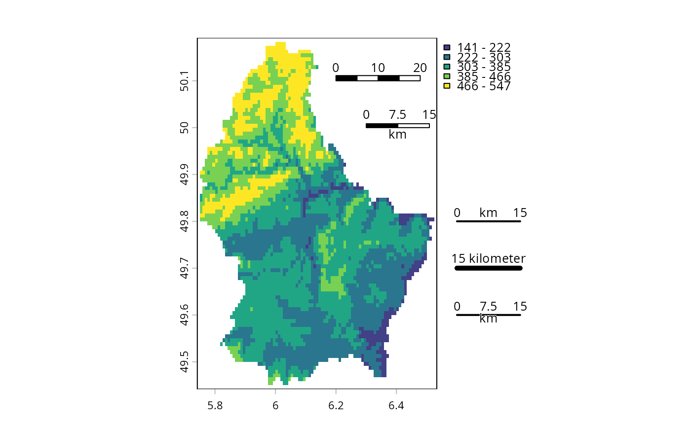 sbar(15, c(6.6, 49.6), divs=4, cex=.8, below="km")