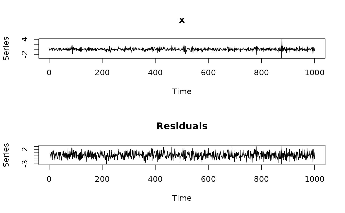 x.arch <- garch(x, order = c(0,2)) # Fit ARCH(2)
