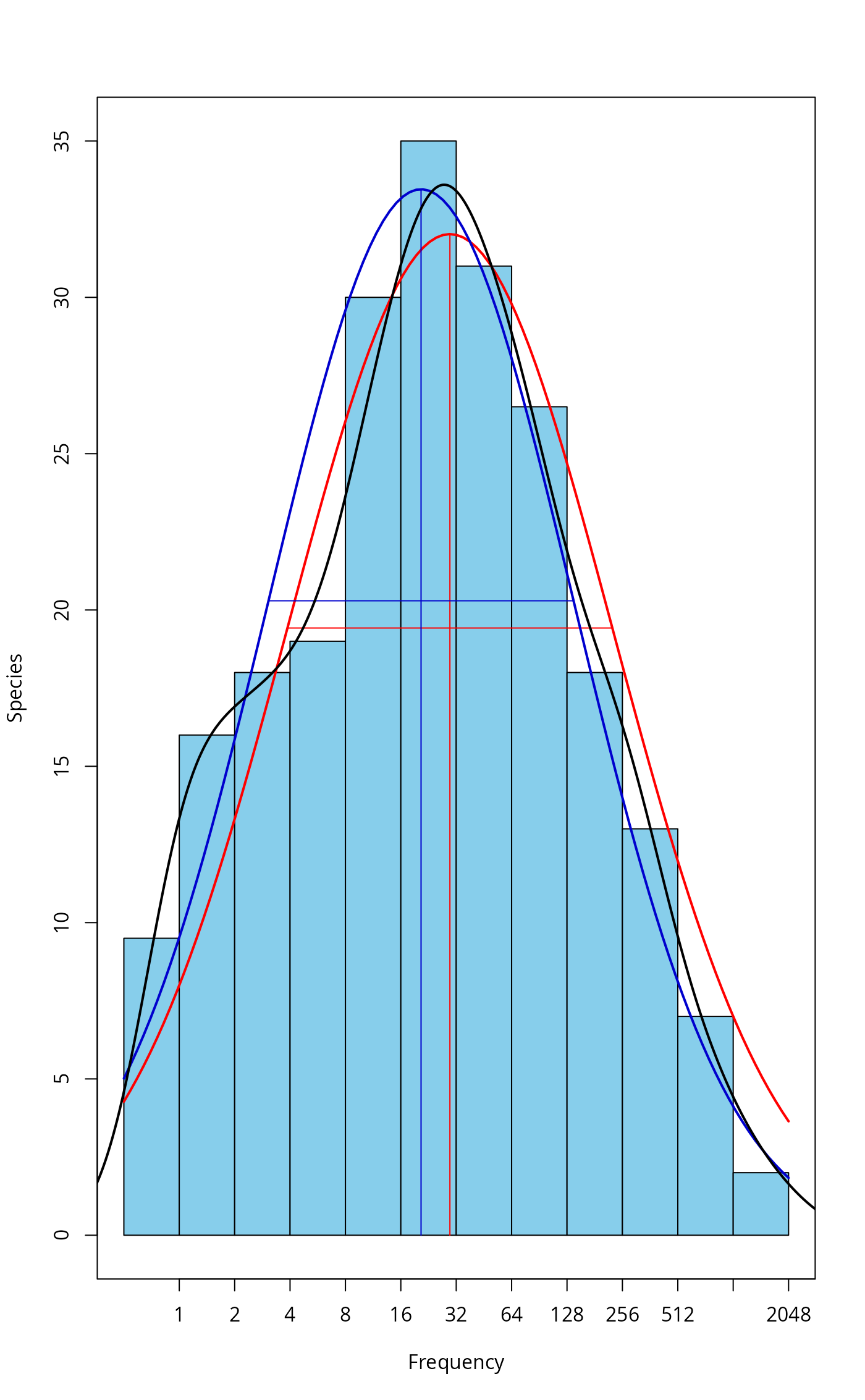 number of species at mode. The lognormal model is usually truncated