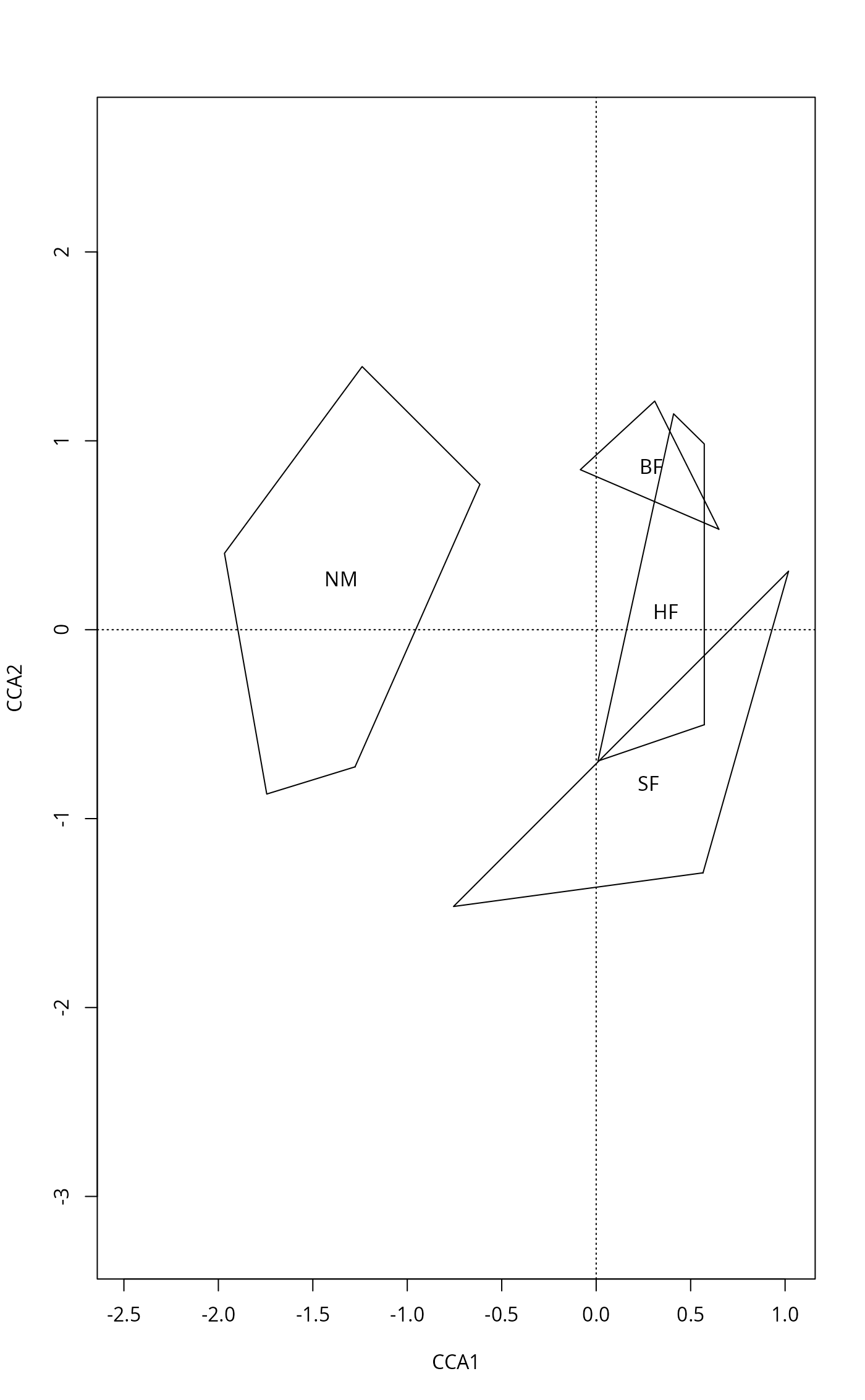 mod <- cca(dune ~ Management, dune.env)
