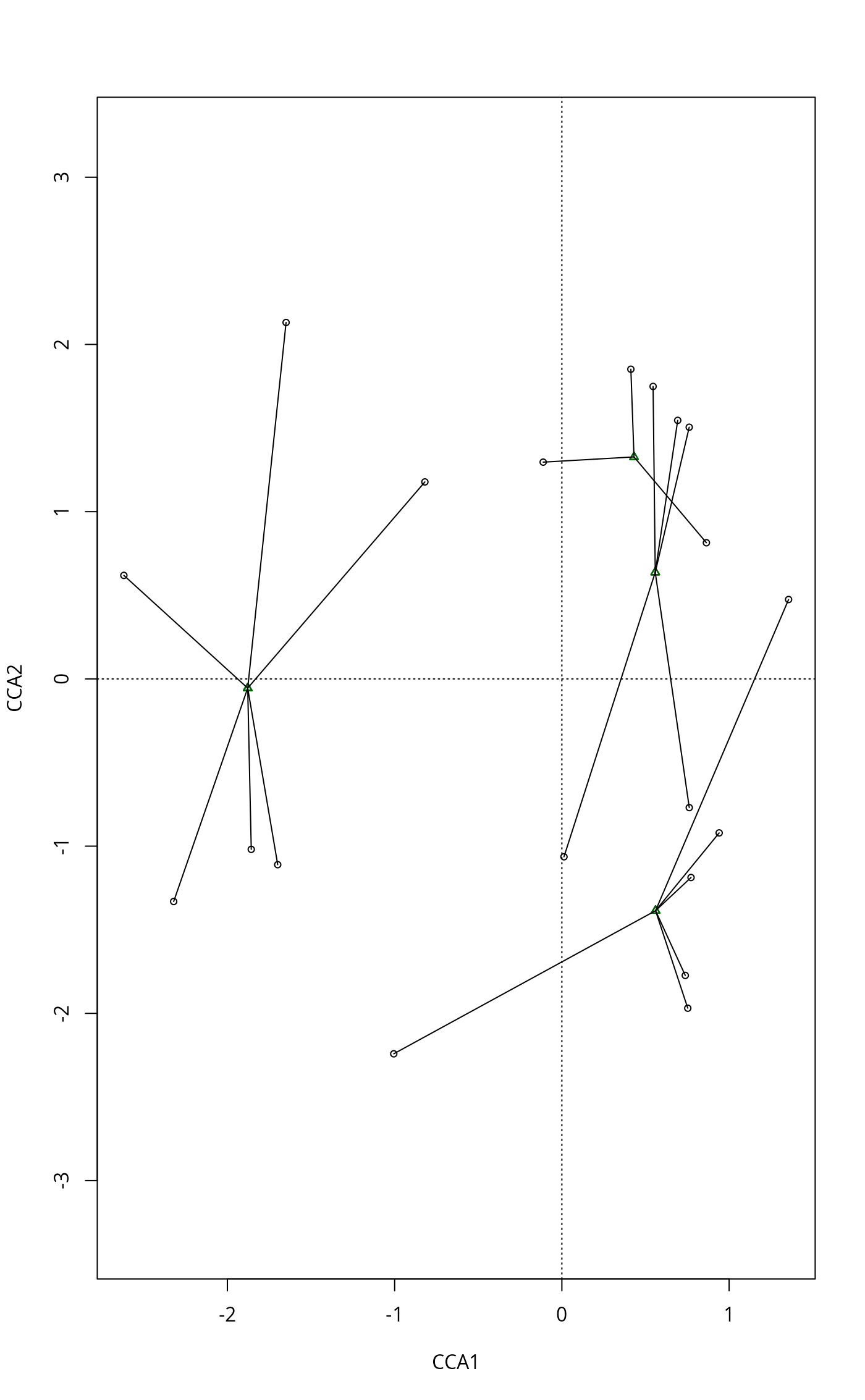 diagrams can be produced by vegan plot.cca,
