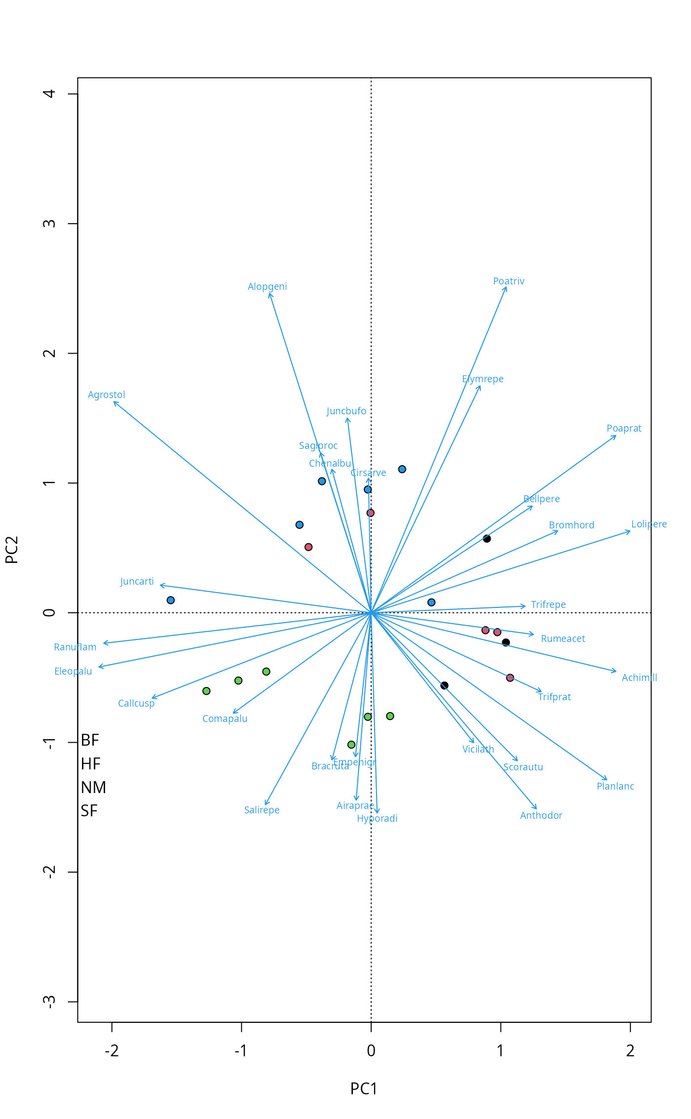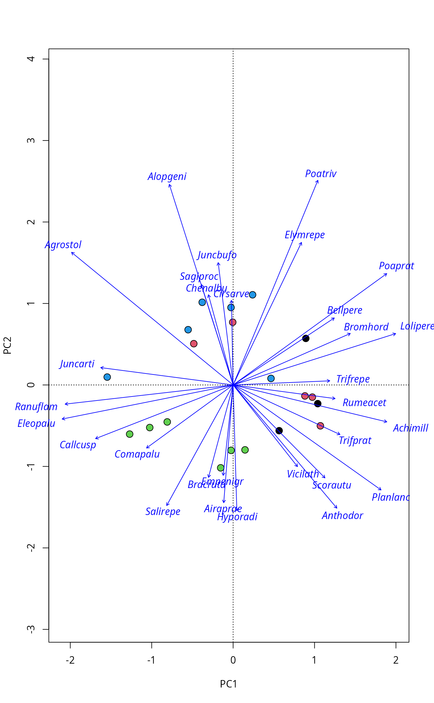 pl <- plot(pca, type="n", scaling="sites", correlation=TRUE)