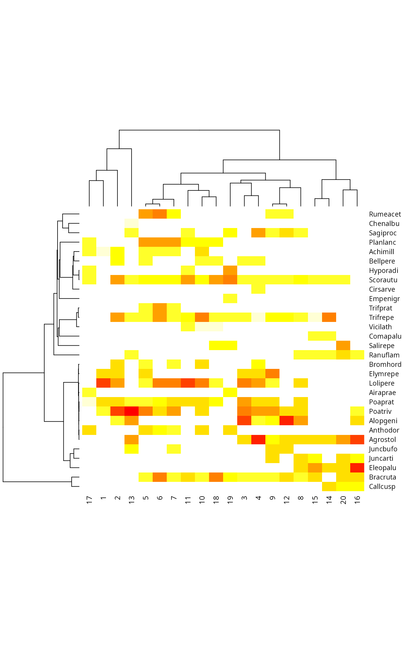 tabasco(dune, hclust(dtree), cl)