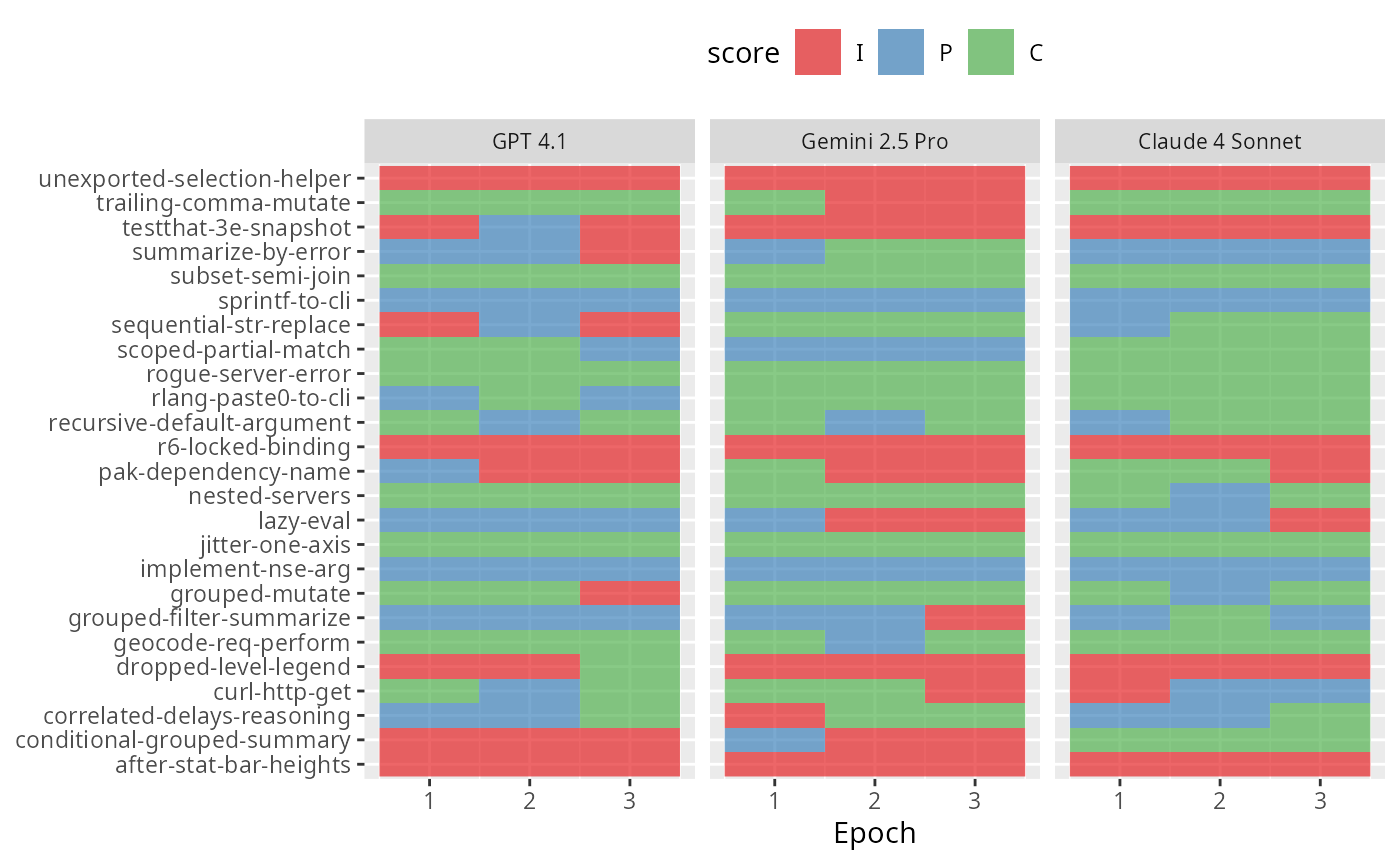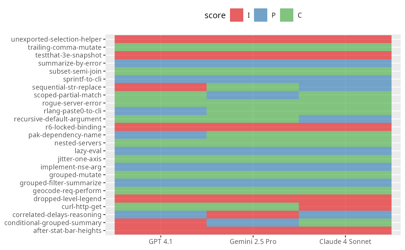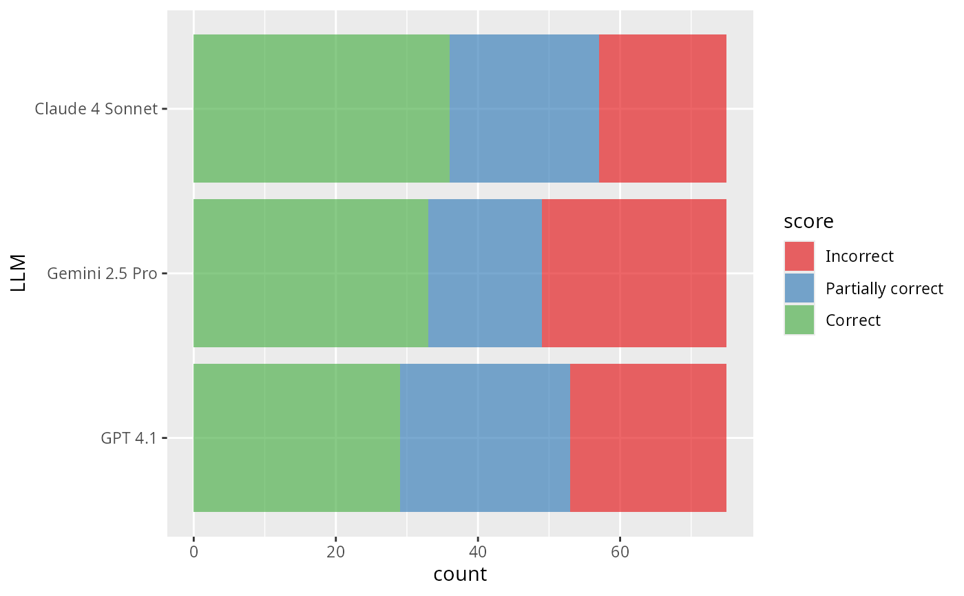 are_gemini$eval(solver_chat = chat_google_gemini(LLM = "gemini-2.5-pro-preview-05-06"))These evaluations look a lot like those from the “Getting started