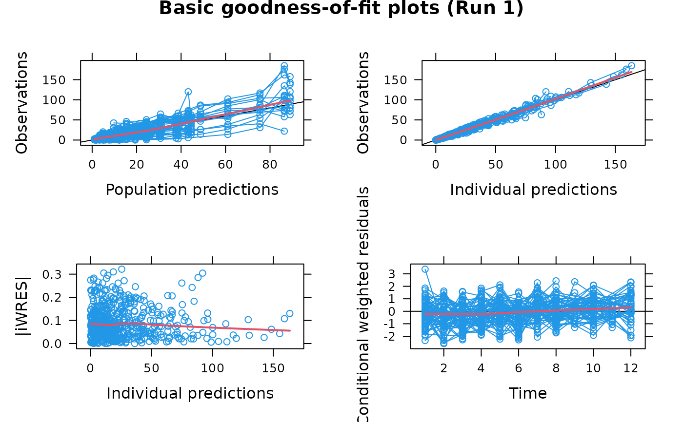 basic.gof(object, force.wres = FALSE, main = "Default", use.log = FALSE, ...)An xpose.data object.