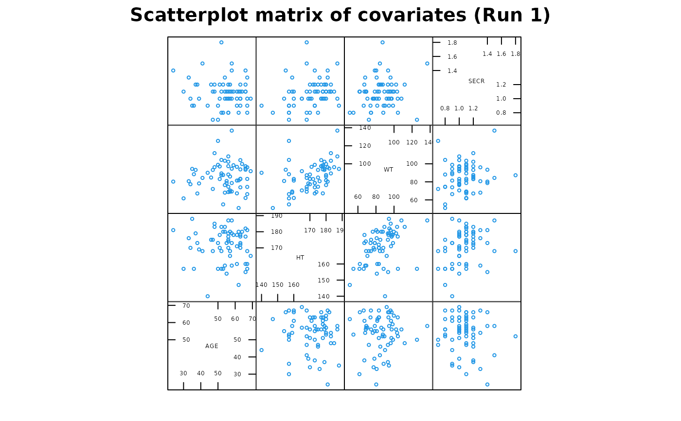 "Scatterplot matrix of covariates", ...),